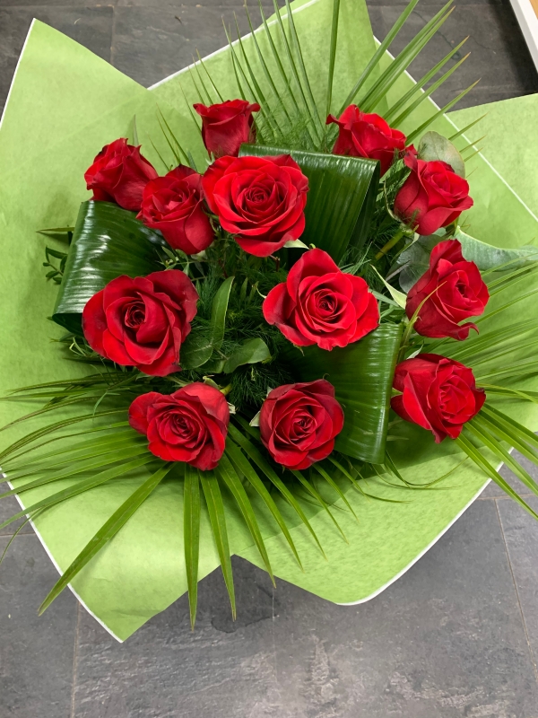 Our Dreamy Dozen red rose bouquet features one dozen classic large headed red roses arranged with lush foliage. 'Grand' design features 18 classic large headed red roses and 'Superior' has a jaw-dropping 24 classic large headed red roses. *Image may vary based on availability.